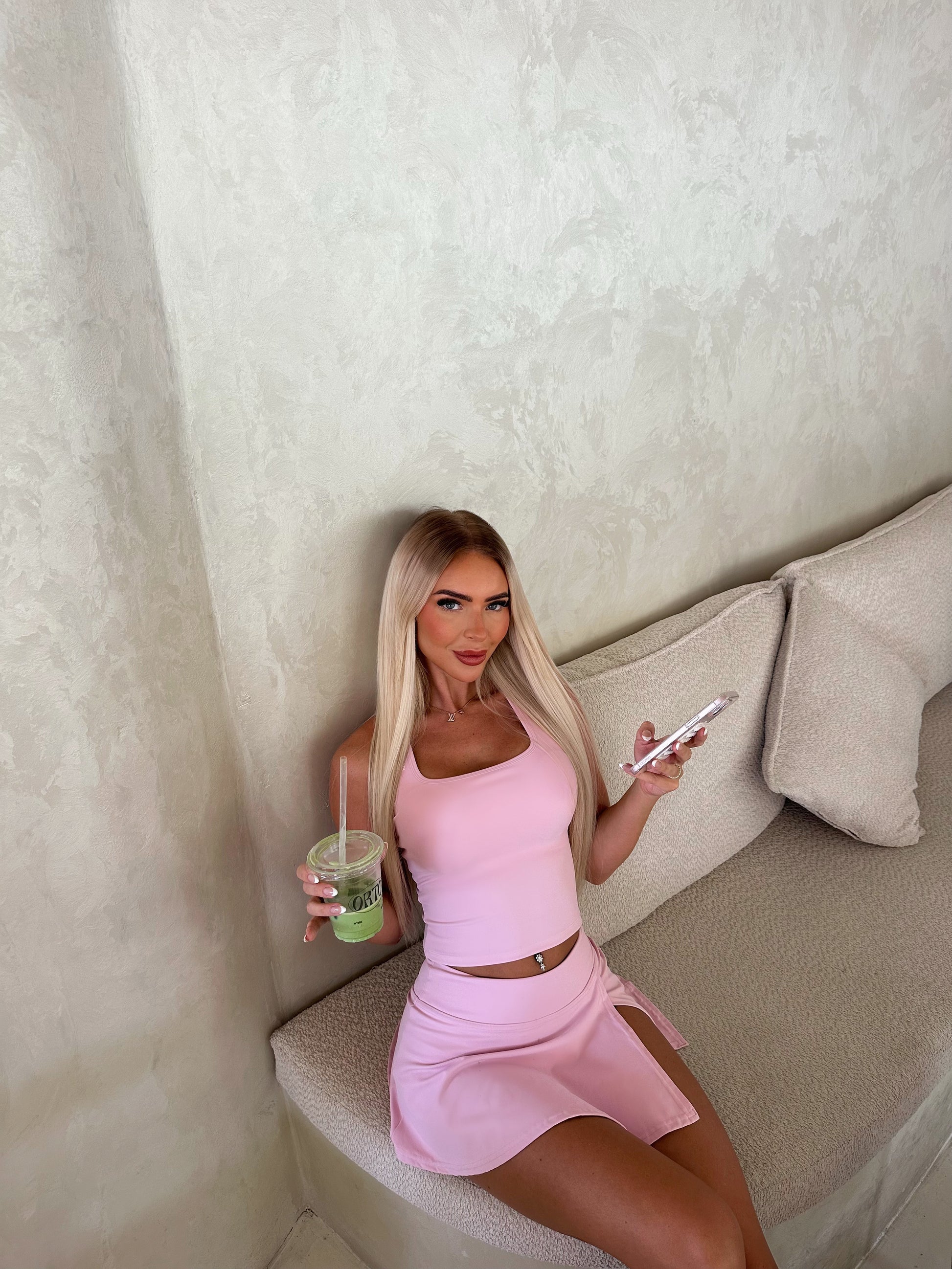 Two Piece Tennis Set, designed for on and off the court, this set features a flattering top paired with a matching skirt that includes built-in shorts for confident coverage and ease of movement. Ultra-soft, stretchy fabric, it moves with you.